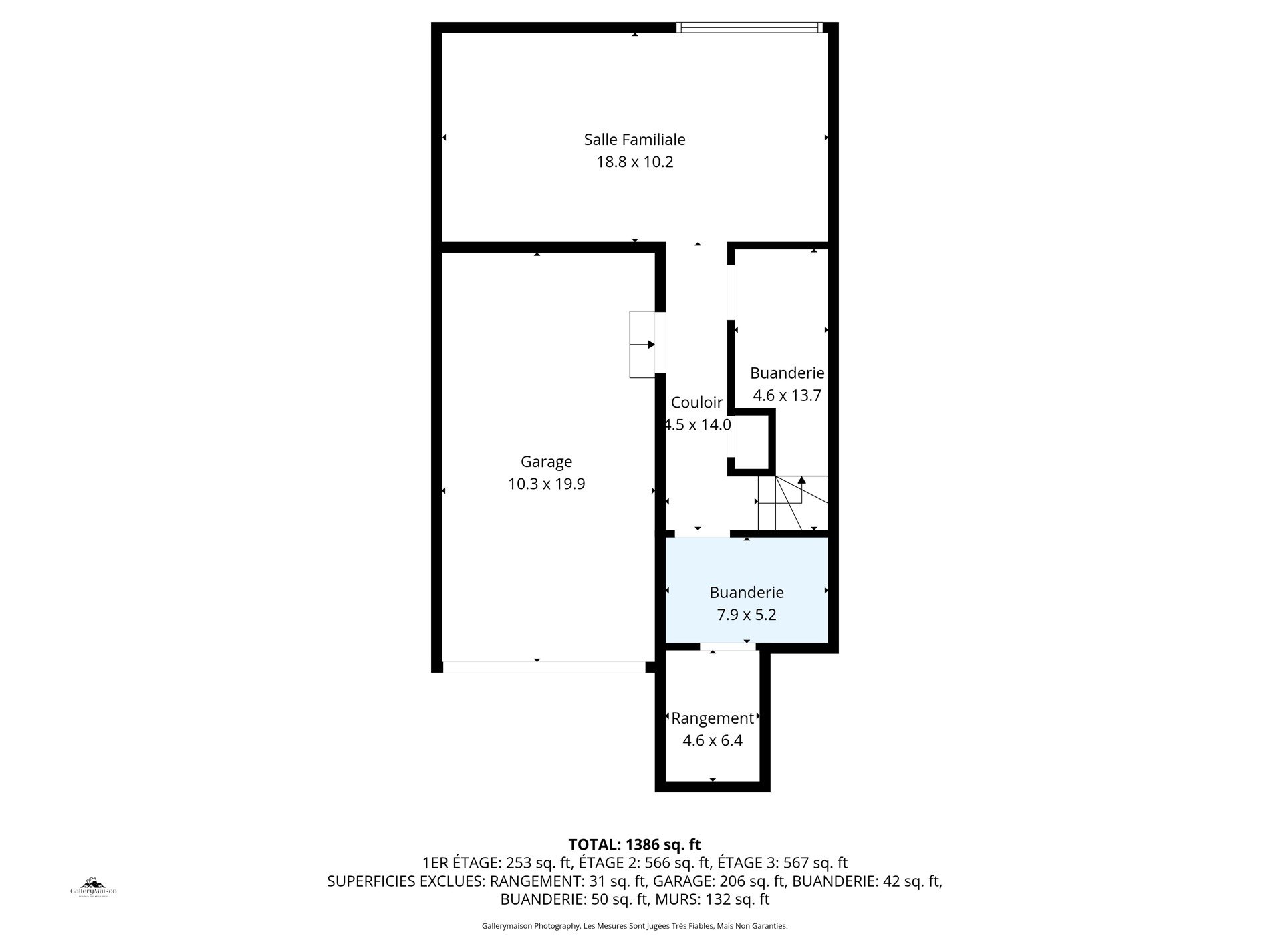 | Rangement | 4.6 x 13.7 P | Sous-sol | Béton |