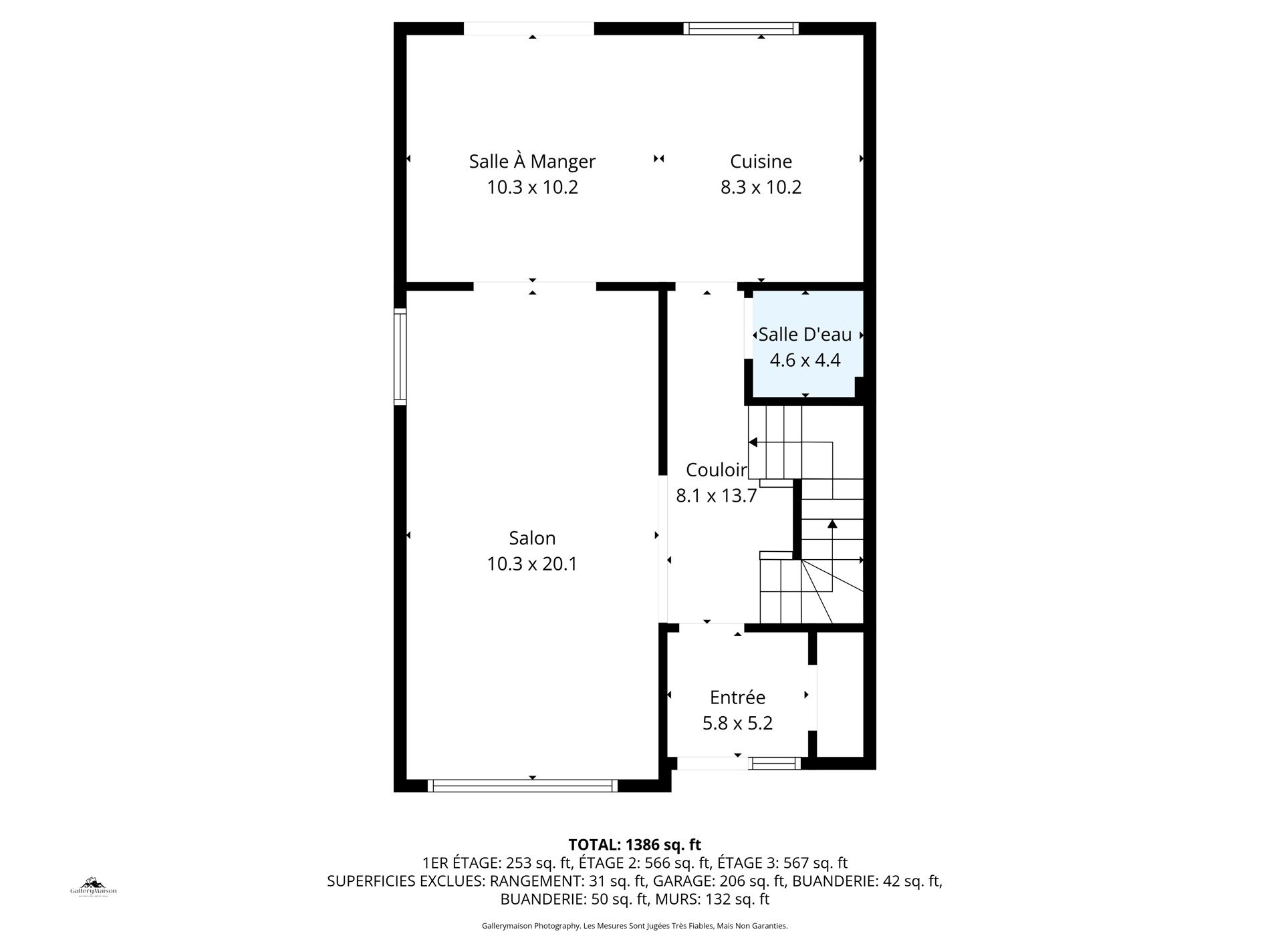 | Salon | 10.3 x 20.1 P | Rez-de-chaussée | Tapis |